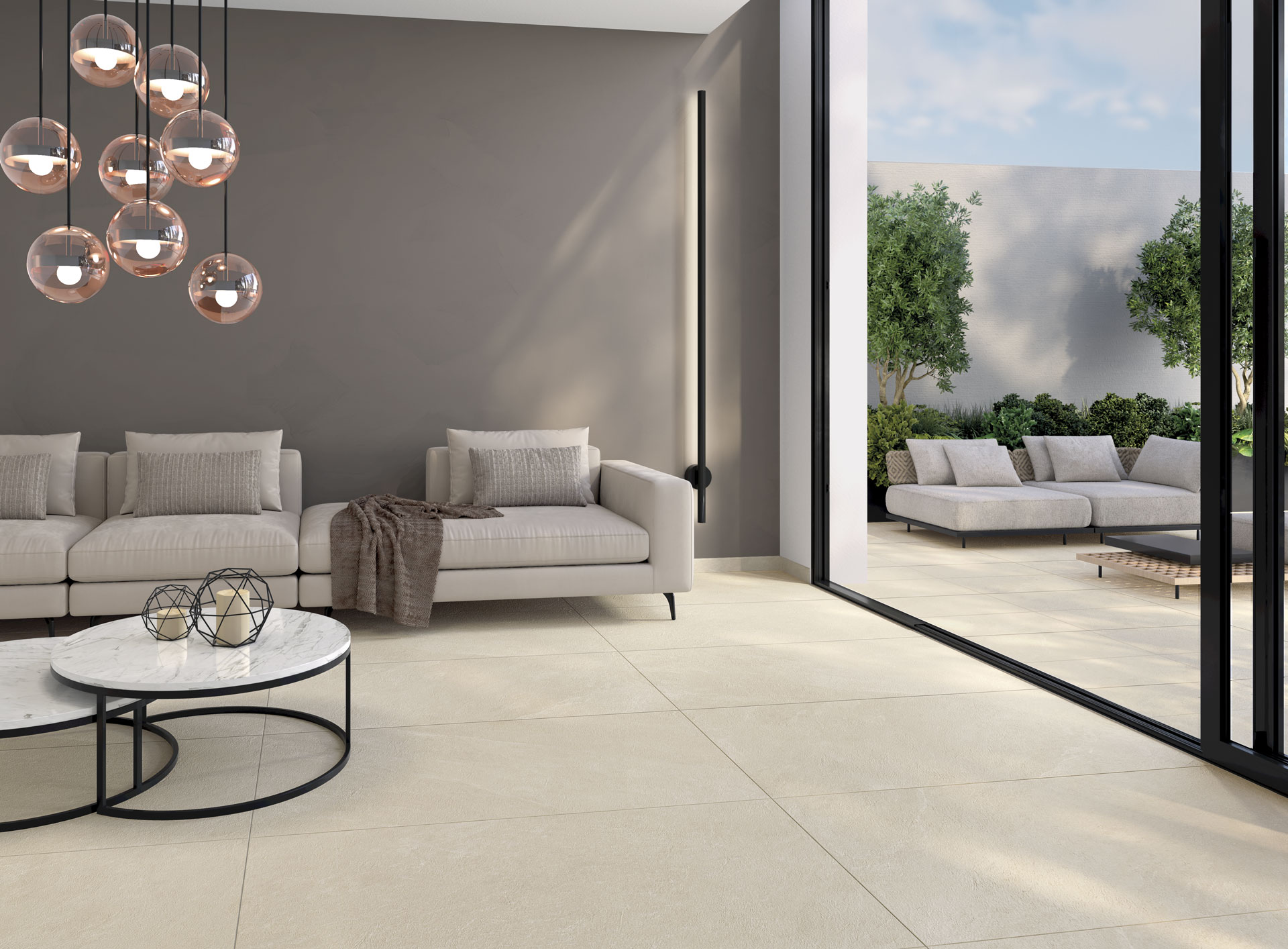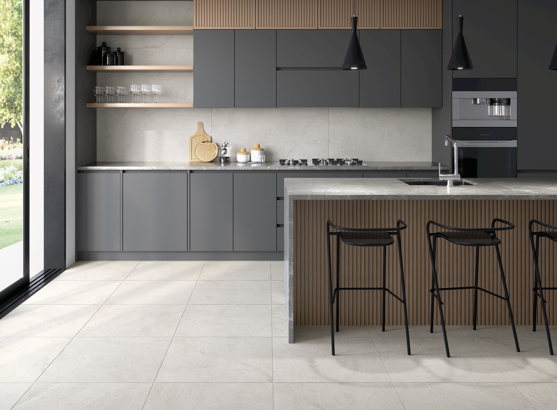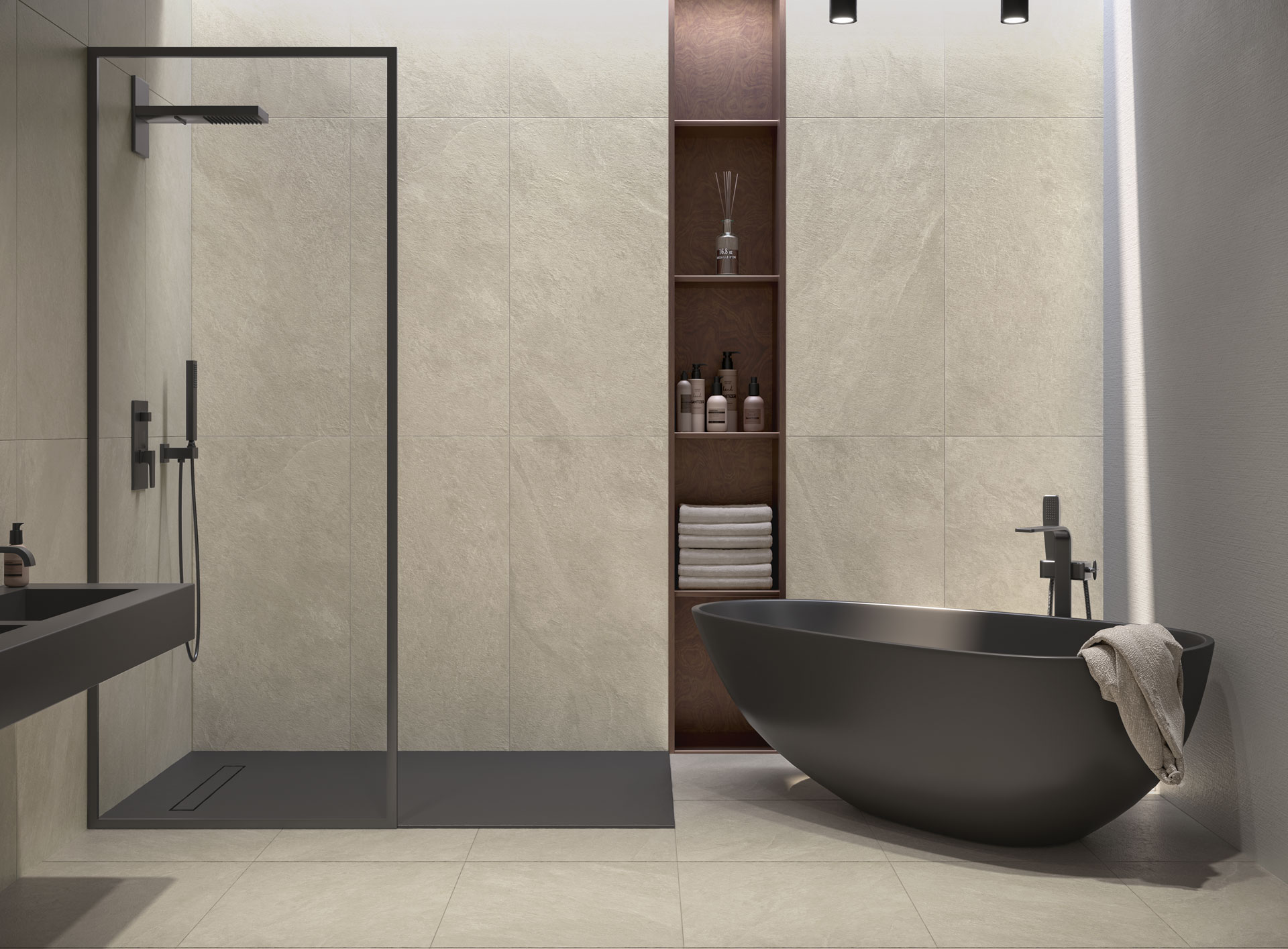 Pavimento e rivestimento in gres porcellanato effetto pietra.