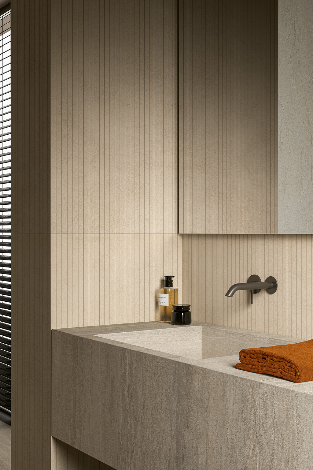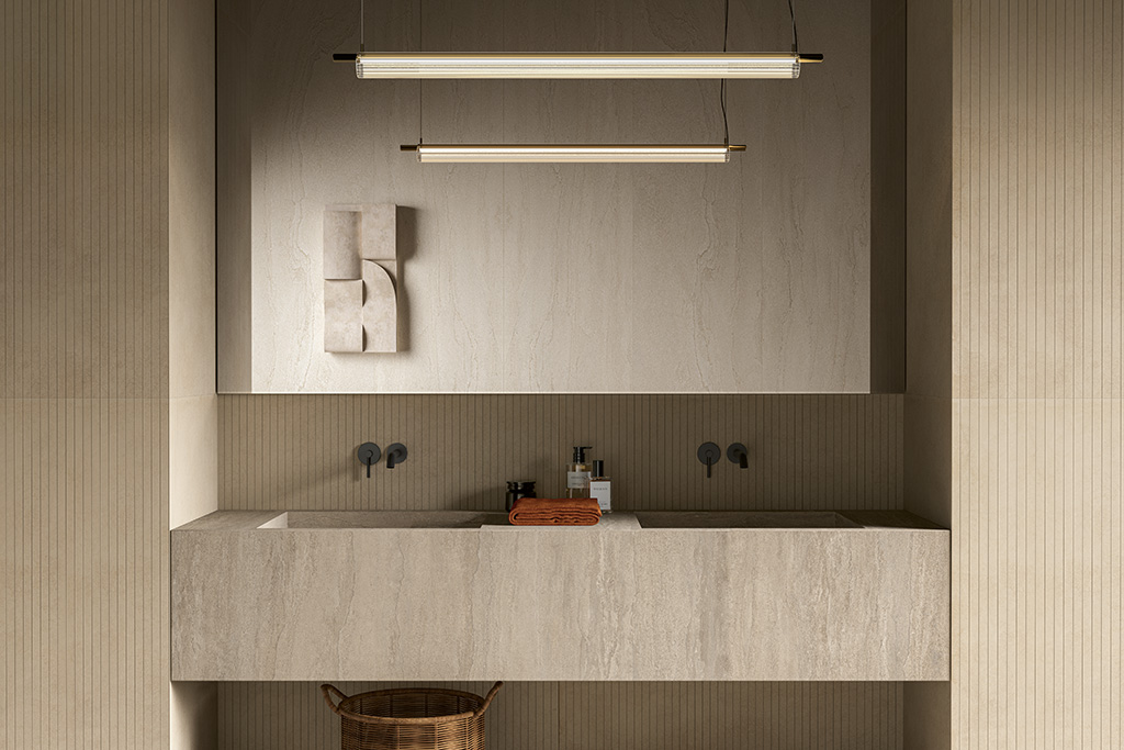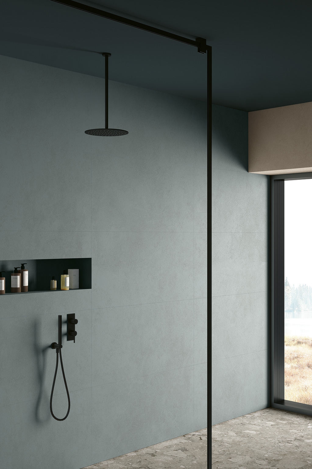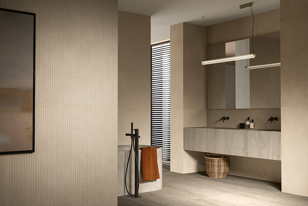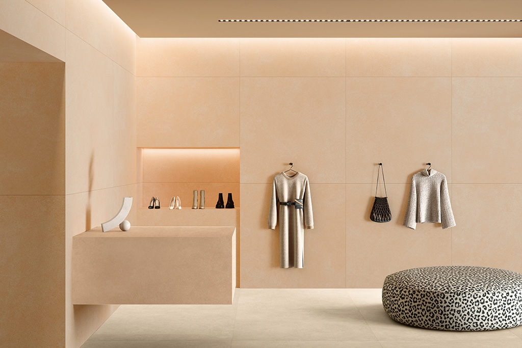 Pavimento e rivestimento in gres porcellanato effetto cemento.
